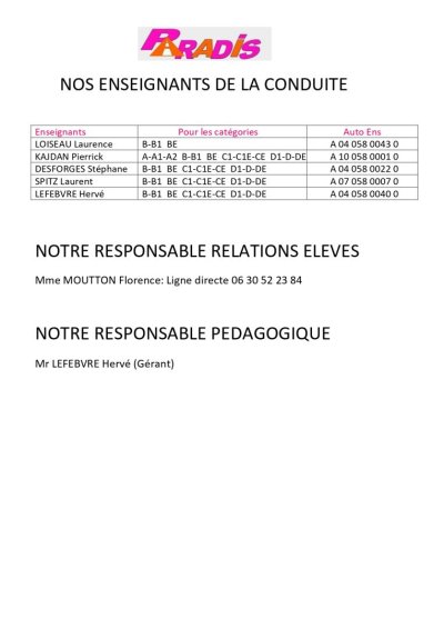 Le règlement intérieur de l'auto-école (ci-dessous) est consultable dans nos locaux.