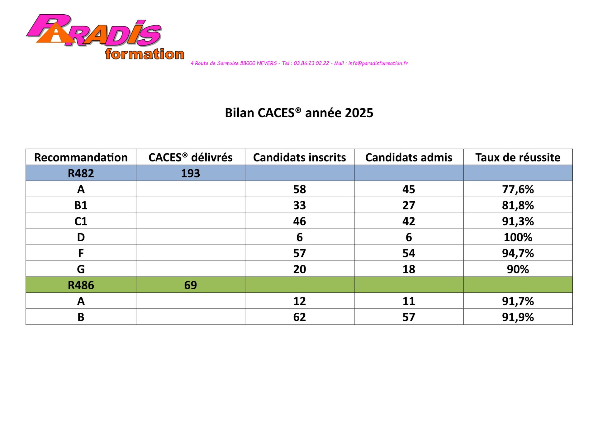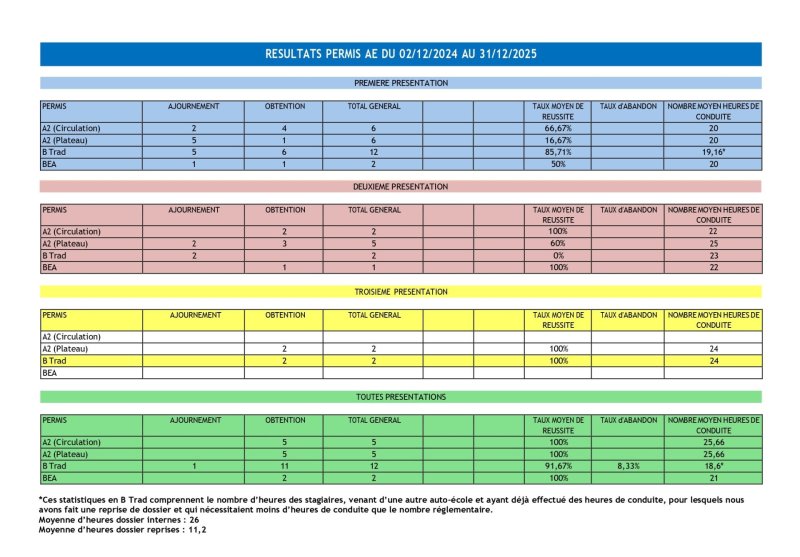 Les derniers résultats sur une année glissante et par catégorie de permis peuvent être envoyés sur simple demande.